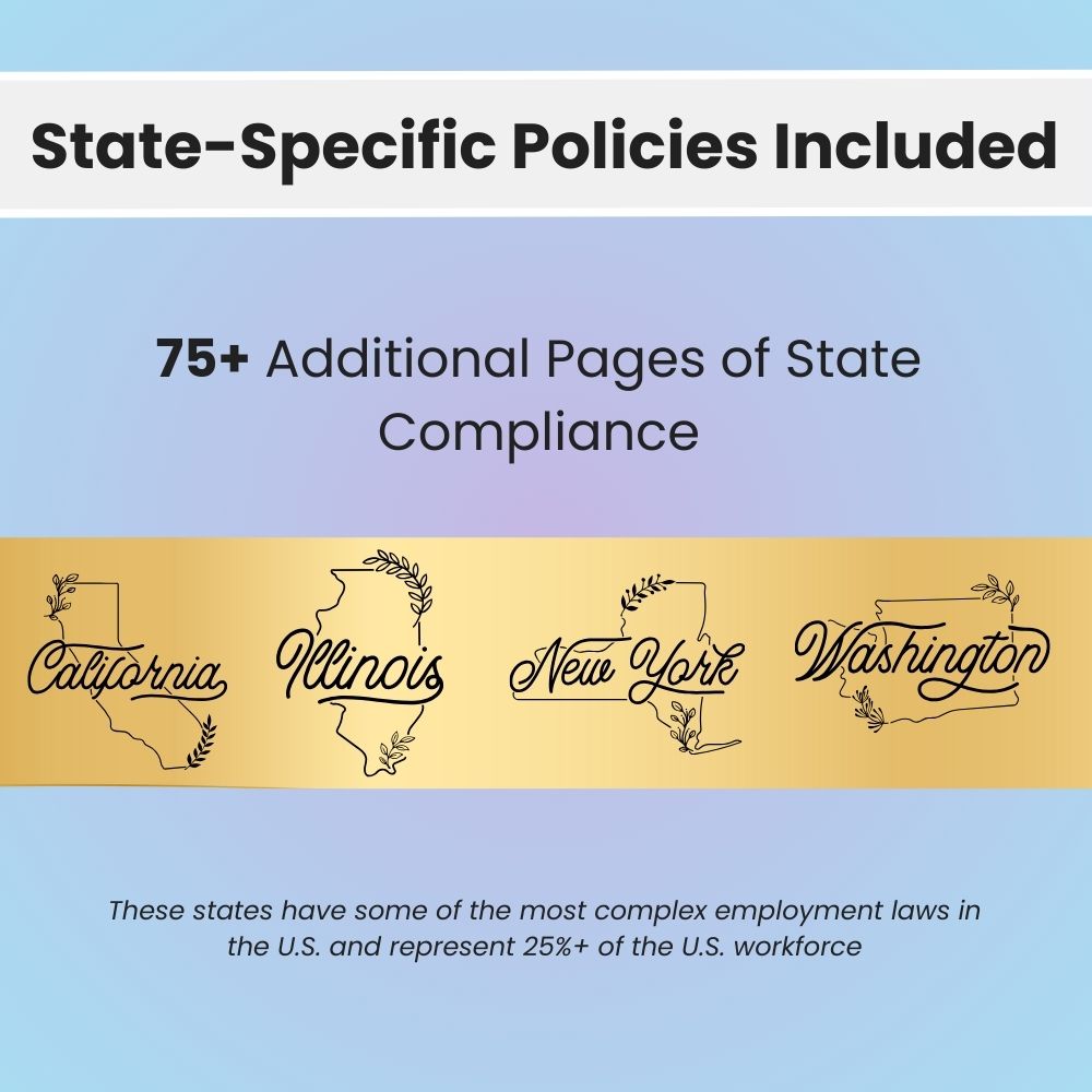- For Multi-State Employers: The 4 state addendums alone would cost $2,000-$4,000 if you hired an attorney to research and draft state-specific policies. You get all 4 for a fraction of that cost.