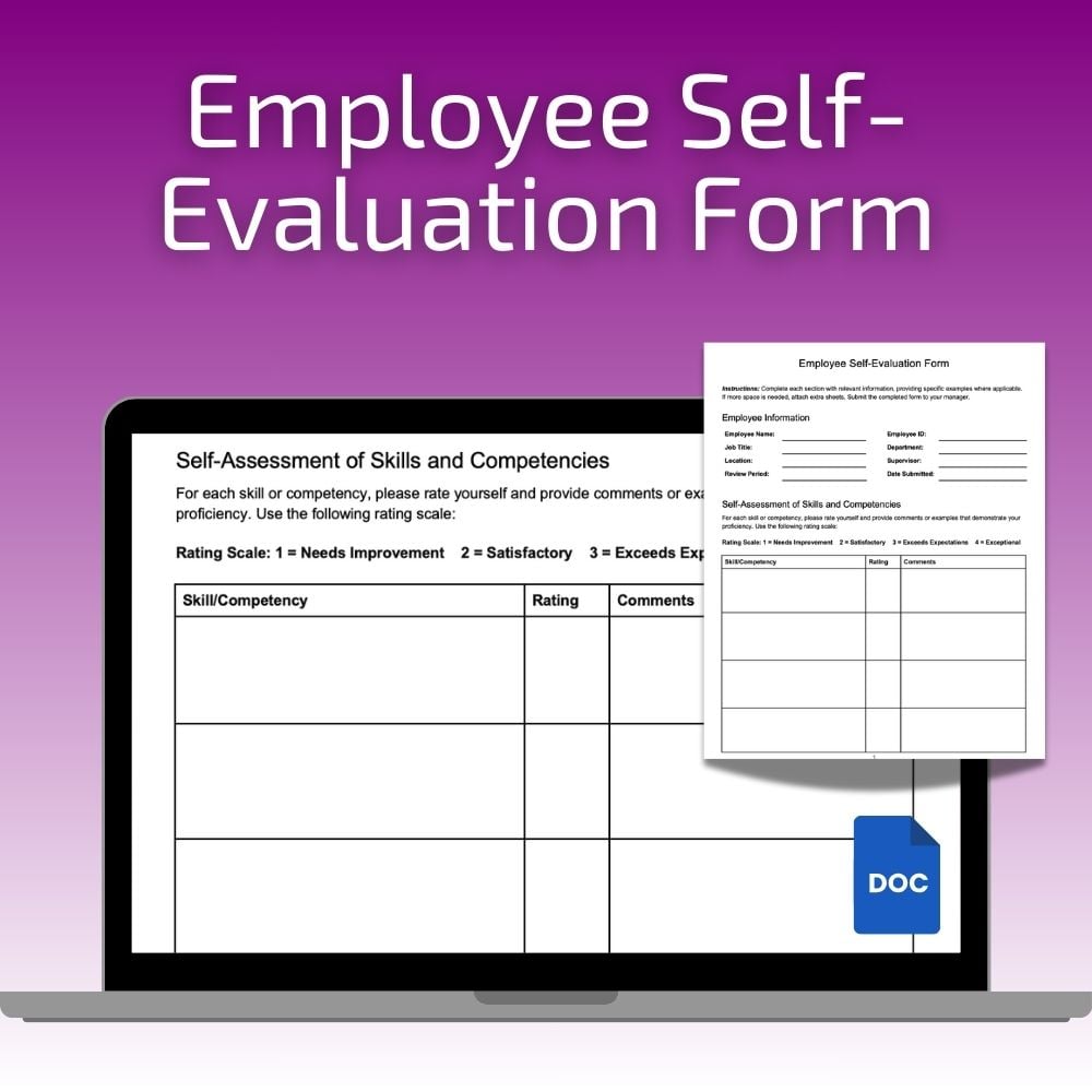 Keywords: Employee Self-Evaluation Form, Performance Review Template, Employee Development Tool, HR Self-Assessment Form, Goal-Setting Template, Employee Performance Evaluation, Customizable HR Forms, Self-Reflection Form