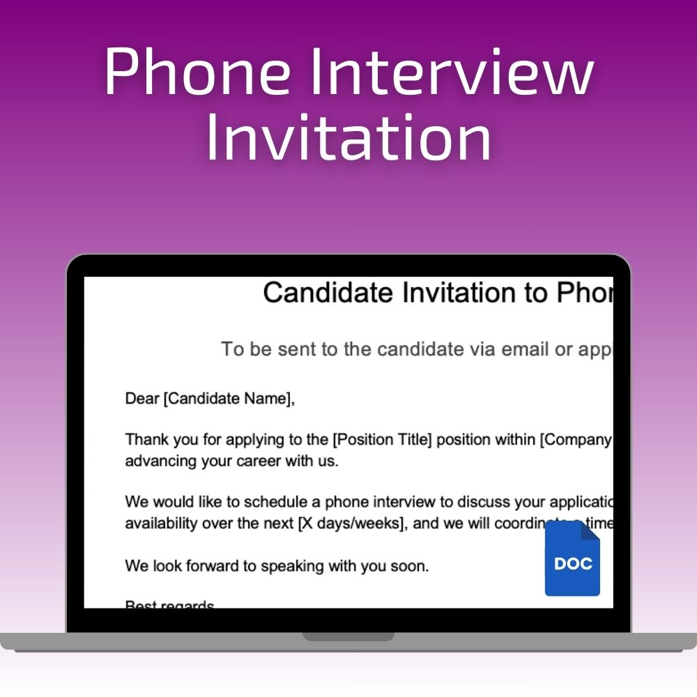 •Professional Invitation: Send a polished and courteous email inviting candidates to a phone interview, helping to create a positive first impression and set the stage for an effective interview.