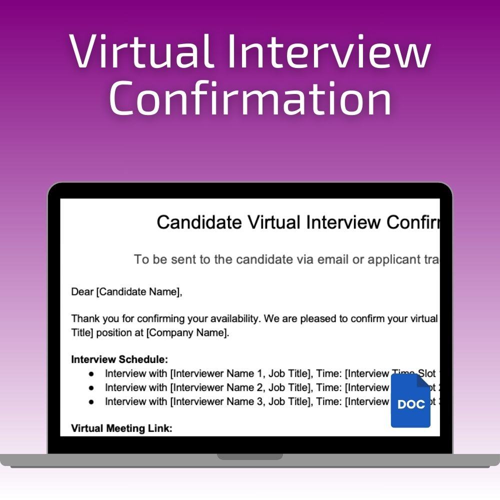 Keywords: Virtual Interview Confirmation Email, Candidate Communication Template, Virtual Recruiting Tools, HR Email Template, Online Interview Scheduling, Professional Candidate Communication, Customizable HR Templates, Applicant Tracking System